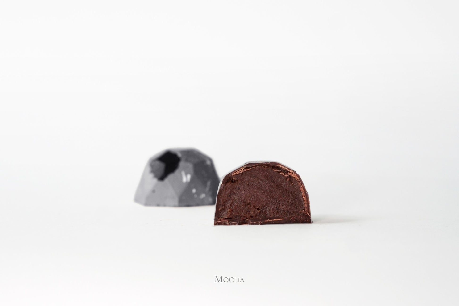 Mocha: Valrhona milk chocolate ganache infused with coffee grounds