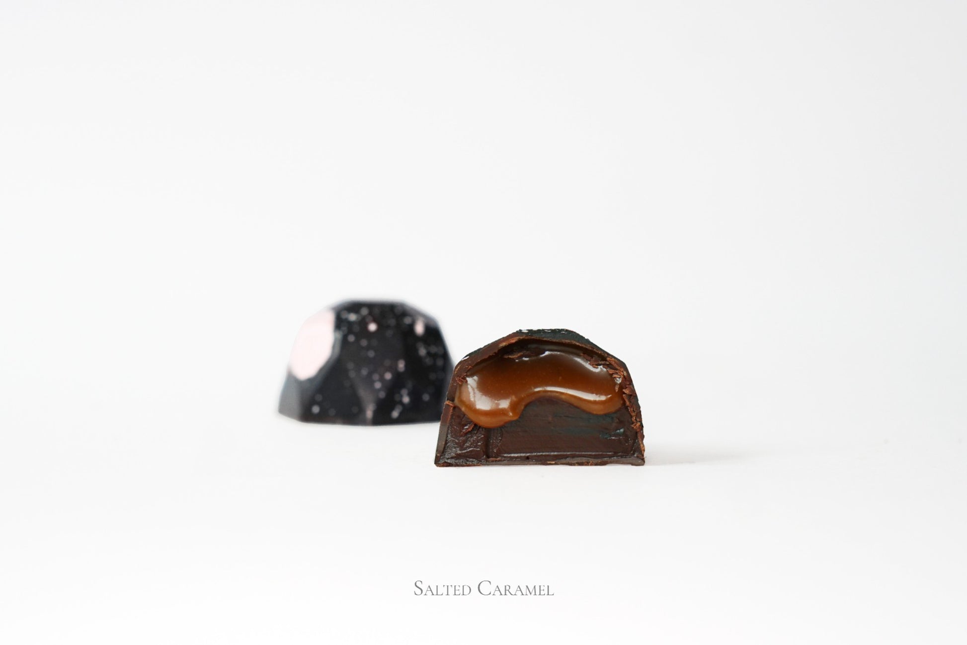 Salted Caramel: 66% Valrhona dark chocolate ganache with salted caramel