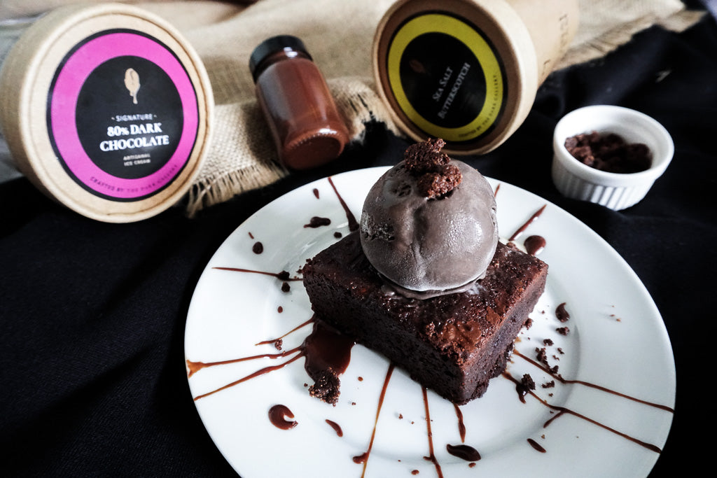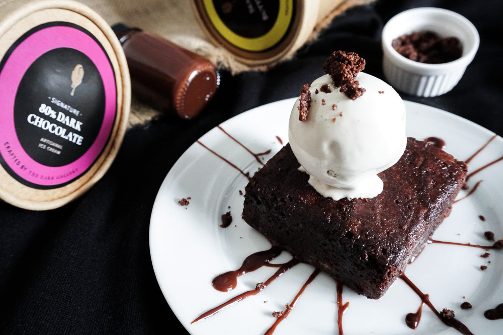 Our popular Ice Cream Brownie, fashioned into a DIY kit for you to plate up your own decadent rendition, exclusive to our web-store. A great gift to be delivered to loved ones, or for an indulgent treat for yourself.