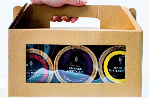 Three of our signature artisanal ice cream pints, packed in a bundle box.
